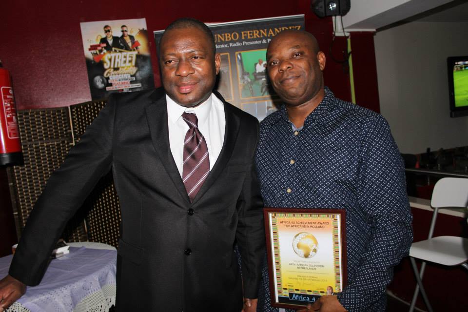 In the picture above- The CEO of African Television Channels Netherlands- Pastor Larry, receives and AFRICA4U Achievement