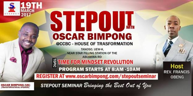 All those that live around Kumasi and it’s environs, STEPOUT is coming closer to you like never before on the 19th of March 2017. Seize the opportunity and be part of this great event. See flyer for more details.