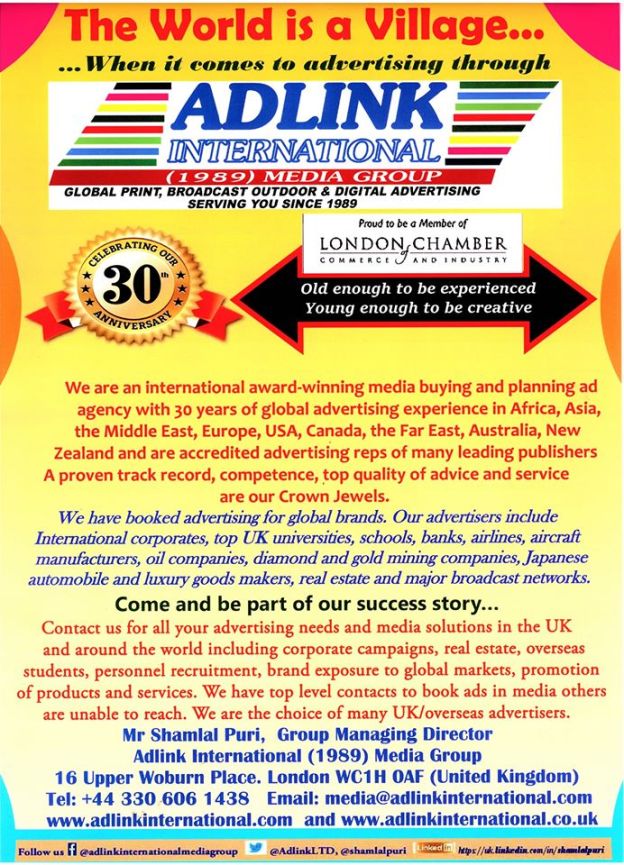 Adlink International Ltd provides advertising services and representation to media houses throughout the developing and the developed world. We are certified members of the Overseas Press and Media Association London U.K. We have a very strong presence in Africa, Asia, the Middle East, Europe, and the Far East.