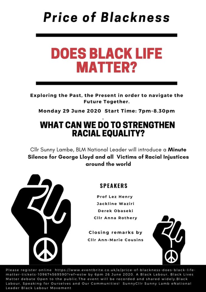 “THE PRICE OF BLACKNESS” ZOOM MEETING ON MONDAY THE 29TH OF JUNE AT 7PM- DO NOT MISS IT