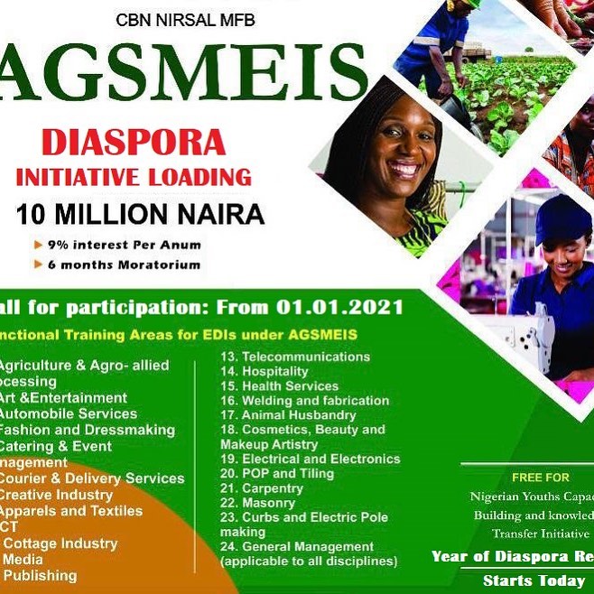 Assisting participants in applying and *possibly securing external business development fund*, especially from the Central bank of Nigeria assisted Agribusiness Small, and Medium Enterprises Investment Scheme *(AGSMEIS)*.