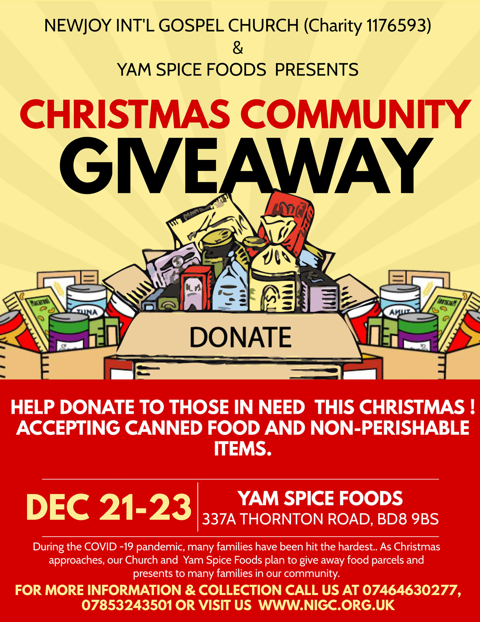 Thirdly, is our Christmas Giveaway from 21-23 December. As the body of Christ, we need your involvement and contribution. You may volunteer or donate and or do both.Please, if you know of a struggling individual, family or group, please contact us ASAP.Together, we make a difference in our community this Christmas.