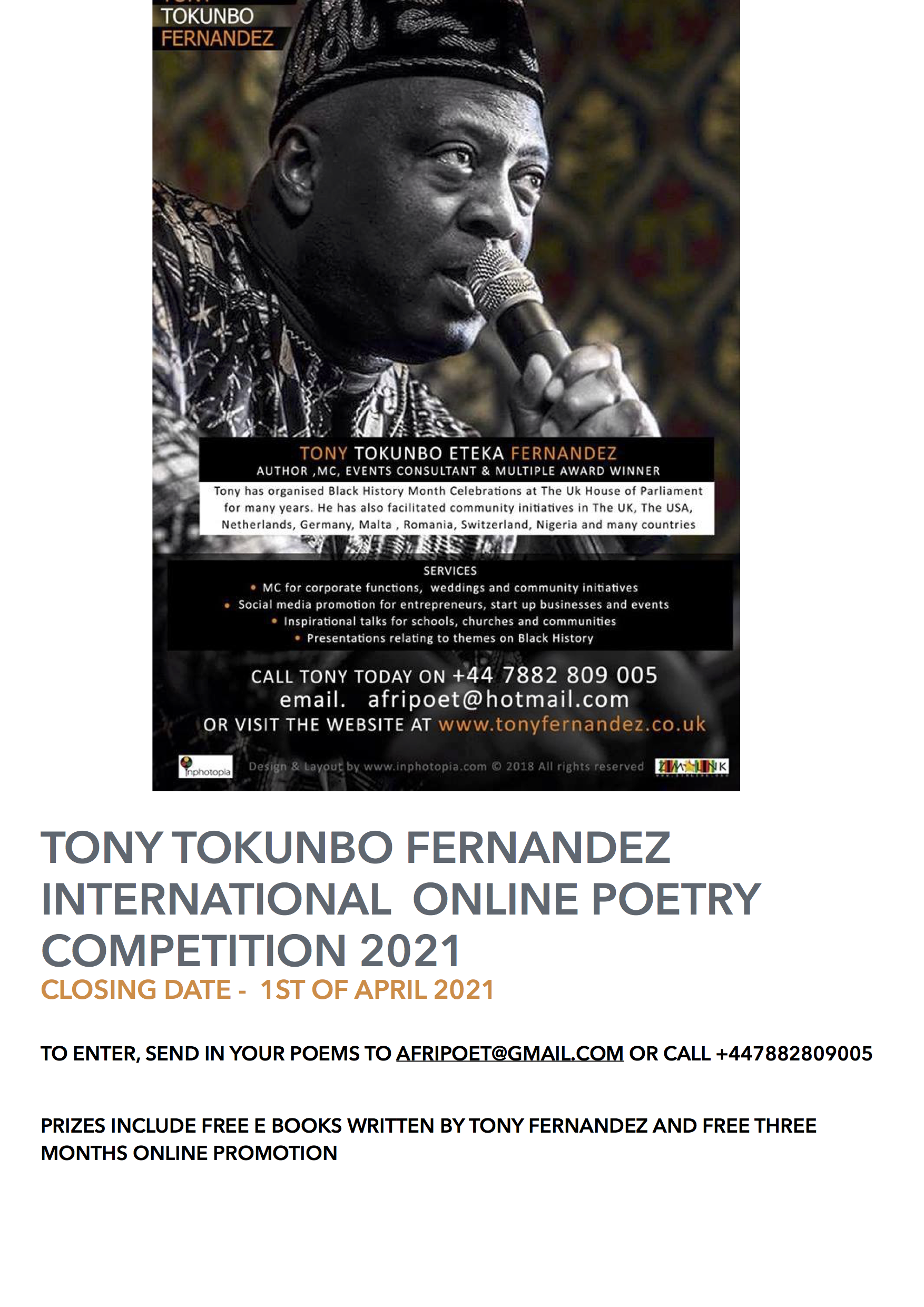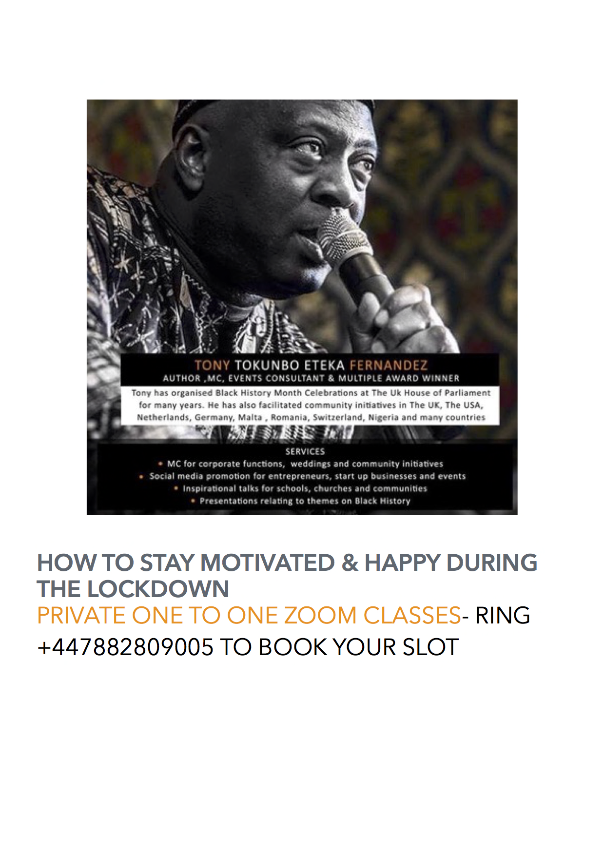 MULTIPLE AWARD WINNER, AUTHOR,, CORPORATE MC, MENTOR, PROMOTER & AMBASSADOR FOR PEACE -UNIVERSAL PEACE FEDERATION. WE PROMOTE THE SUCCESS STORIES OF AFRICANS & CARIBBEANS AROUND THE WORLD. CONTACT US NOW ON +447882809005