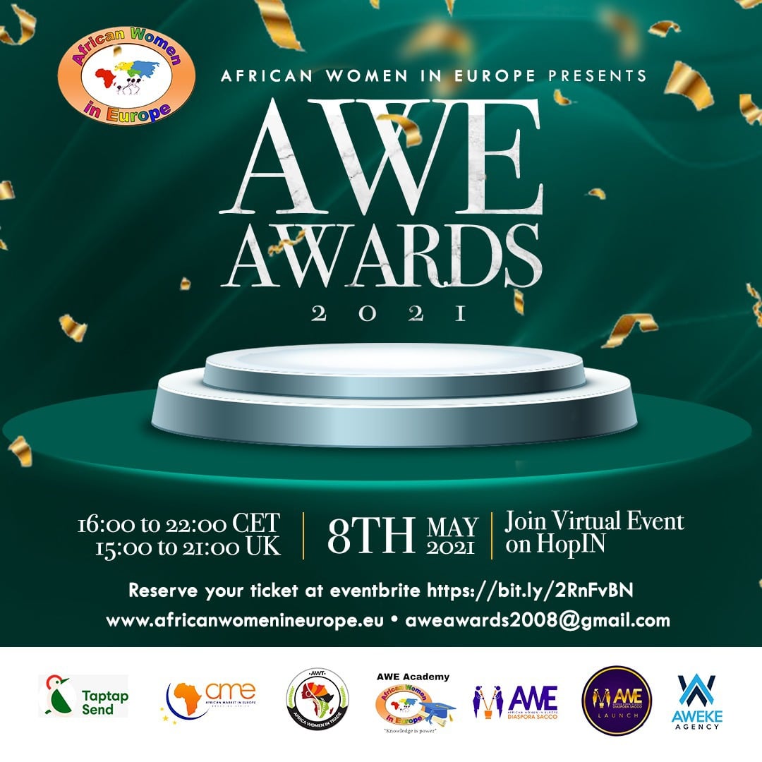 BUY YOUR TICKETS https://bit.ly/2QfecJ9Invite your friends to join us, as we celebrate together#AWEAwards2021#africanwomenineurope#awesacco********* Sponsored by *******TAPTAP Send Get 10 Euro off your first payment use CODE : AWARDS2021www.taptapsend.com