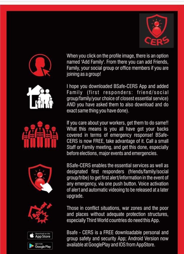 DOWNLOAD THE FREE BSAFE-CERS APP TODAY – DO NOT DELAY