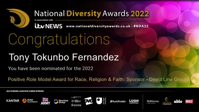 I would like to take this opportunity to thank you all for your votes in relation to my nomination for POSITIVE ROLE MODEL AWARDS FOR RACE, RELIGION AND FAITH as part of THE NATIONAL DIVERSITY AWARDS 2022 in association with ITV NEWS.