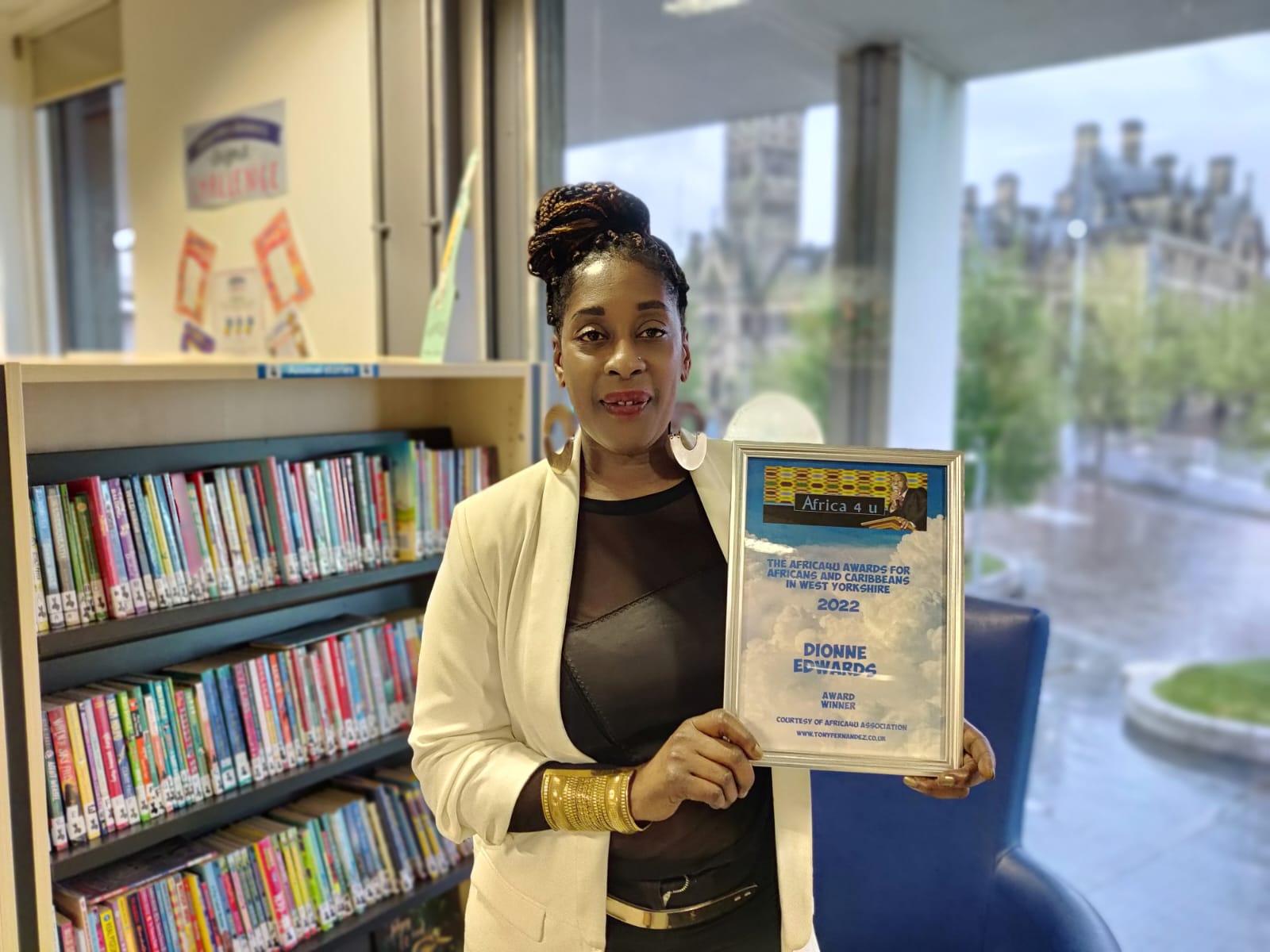 Dionne Edwards based in Leeds was one of The Africa4u Award Winners at The Africa4u Awards for African and Caribbean Achievers living in West Yorkshire. The well attended event was held on Friday the 6th of May at The City Library in Bradford.