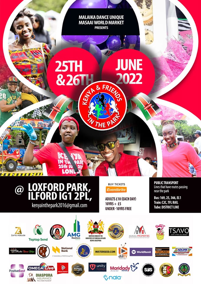 Kenya and friends in the park is a project set up by Malaika Dance Unique, Maasai World Market and supported by Kenyans in the United Kingdom; the project involves having an annual event with an aim of taking it to different countries.