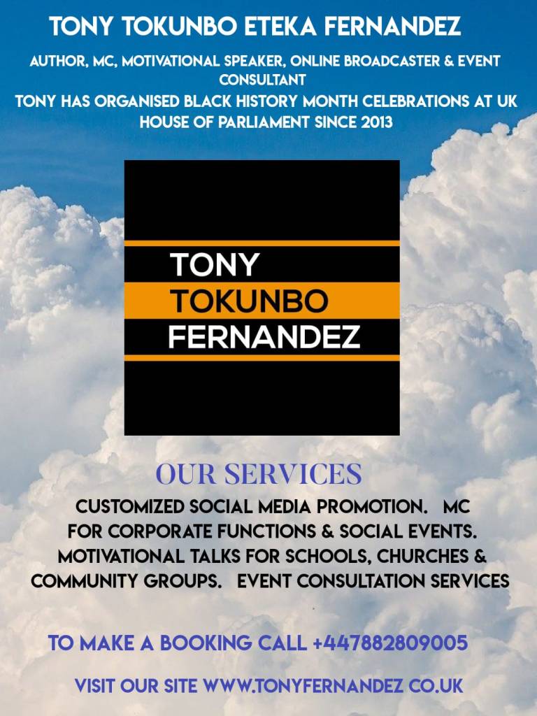 Some of these include Our Black History Month Celebrations taking place at The UK House of Parliament as well as some amazing guests lined up on The Tony Tokunbo Fernandez Show.