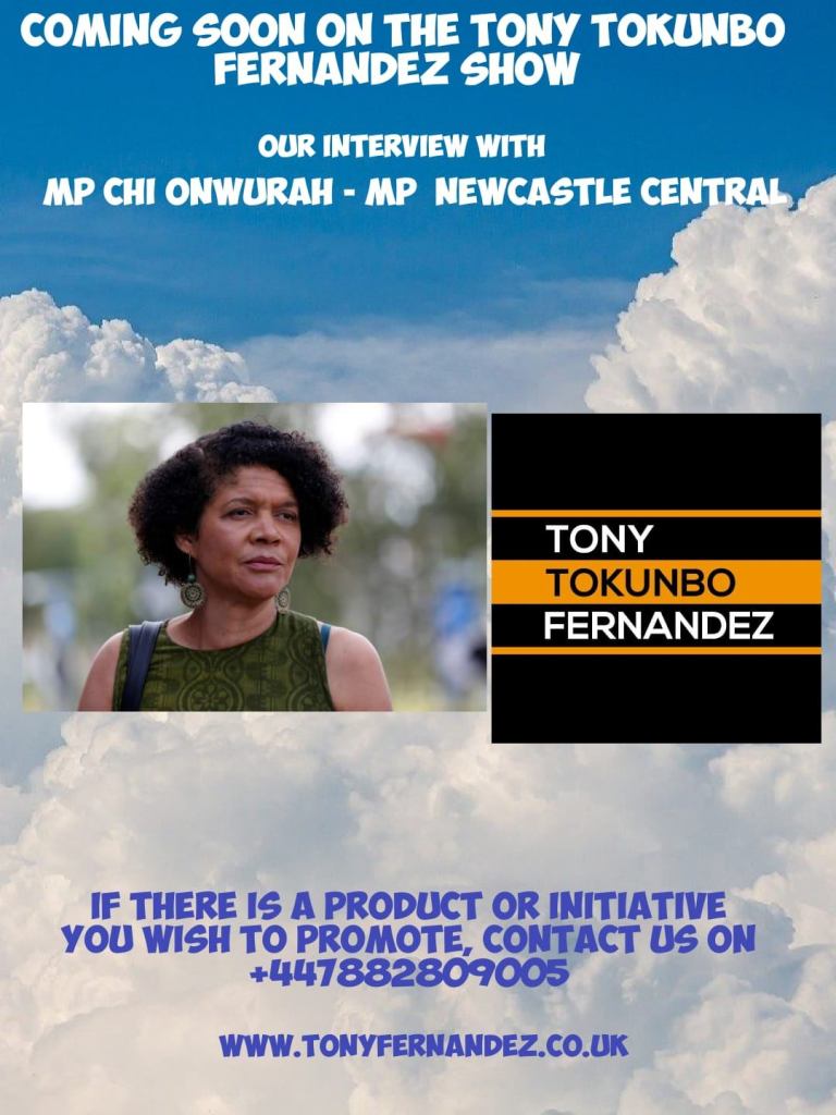 COMING SOON ON TONY TOKUNBO FERNANDEZ SHOW – INTERVIEW WITH MP CHI ONWURAH, MP FOR NEWCASTLE CENTRAL , WATCH THIS SPACE