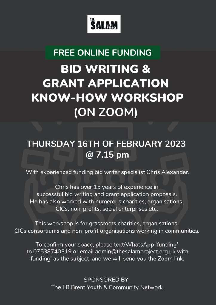 To confirm your space text /whatsapp “FUNDING” to 07538740319 or email admin@thesalamproject.org.uk with “FUNDING” as the subject