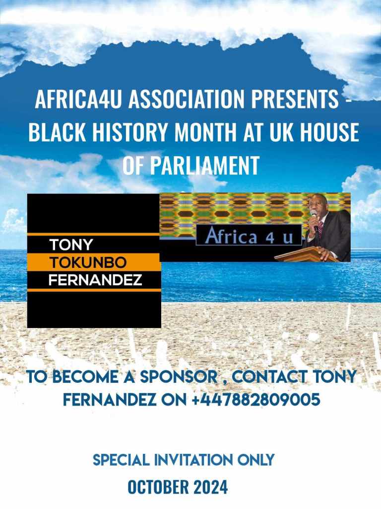 We are pleased to inform you that OUR BLACK HISTORY MONTH CELEBRATIONS shall be taking place at THE UK HOUSE OF PARLIAMENT this October.