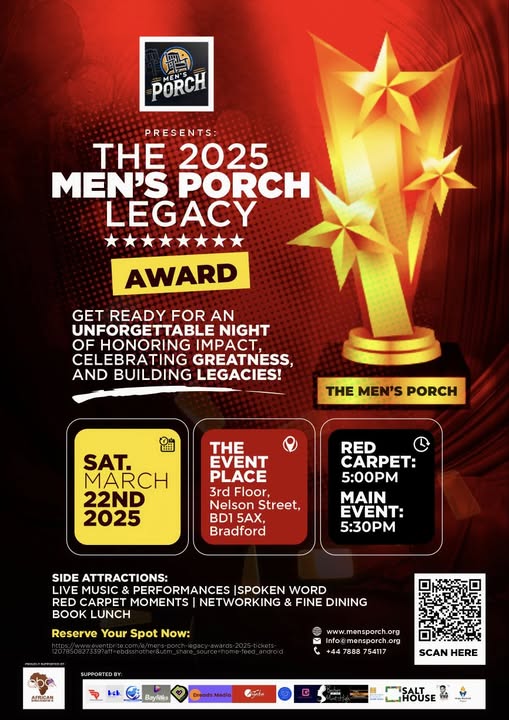 Bradford, UK – The highly anticipated Annual Men’s Porch Awards 2025 is set to be a spectacular evening, honoring men making a significant impact in their communities. The prestigious gala night will recognize excellence and outstanding contributions.