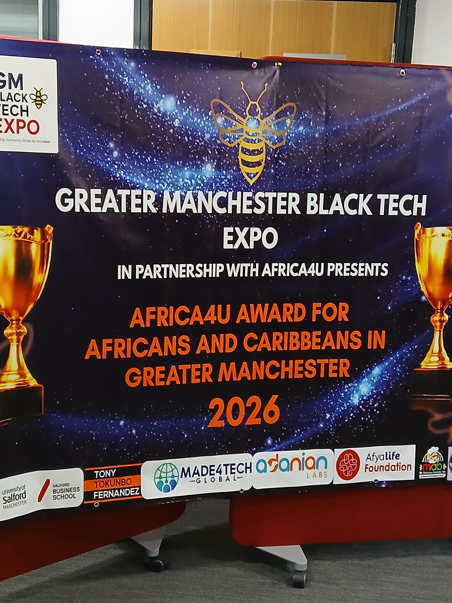 On Monday the 26th of January 2026 , Greater Manchester Black Tech Expo in partnership with AFRICA4U AND FRIENDS CIC organised The Greater Manchester Black Tech Expo Africa4u Awards for Africans in GREATER MANCHESTER which took place at 6 Floor, Room 620 , The Maxwell Building , University of Salford Manchester .